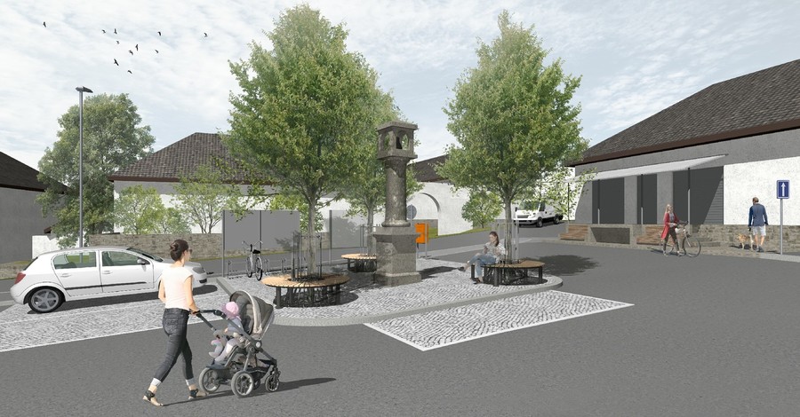 Chcete na zrekonstruované návsi umístit zvoničku? Předkládáme vám k výběru Variantu č. 1: náves bez zvoničky a Variantu č. 2: náves se zvoničkou.
