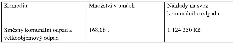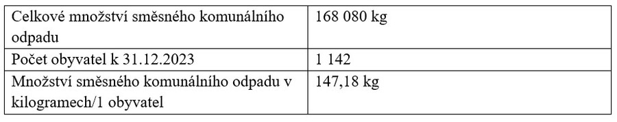 | Množství směsného komunálního odpadu v kilogramech/1 obyvatel | 153,83 kg |