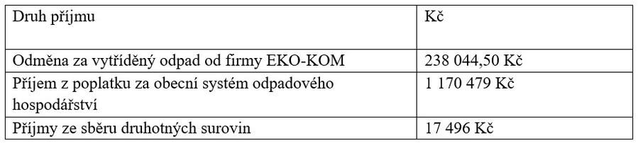| Příjem z poplatku za obecní systém odpadového hospodářství | 1 160 423 |