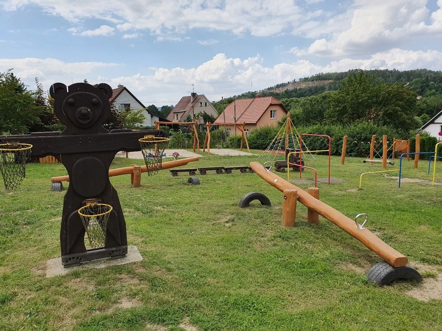 Vybavení: zvonkohra; špalky na chození; sestava se skluzavkou; vahadlová houpačka; houpačka na pružin; smyslový (hmatový) chodník; odpadkové koše; beranidlo malé; pavoučí síť; dvojhoupačka; kreslící tabule; dřevěný záhon zelenina; dřevěný záhon bylinky; dřevěný kompostér; hmyzí hotel; krmítko se stojinou; zahradní domek na nářadí.