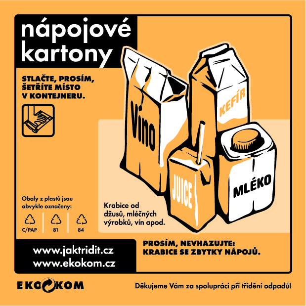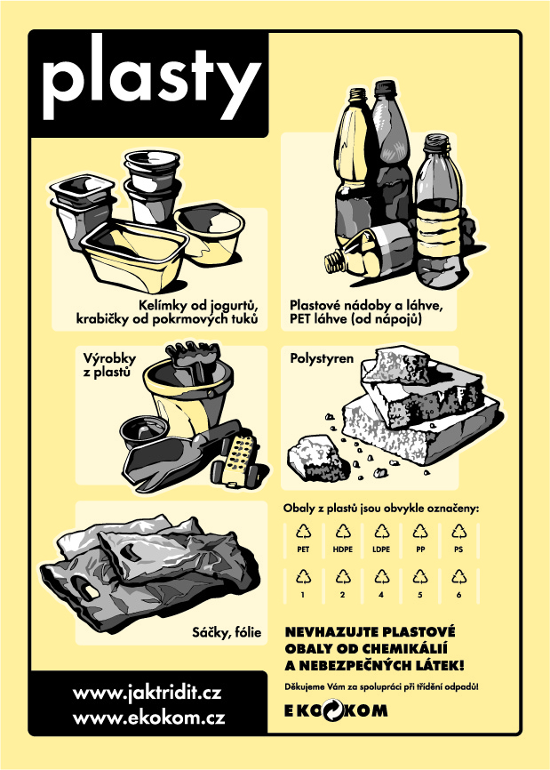 ŽLUTÝ KONTEJNER NA PLASTY A TETRAPAKOVÉ OBALYLZE UKLÁDAT: plasty, PET lahve a nápojové kartony.