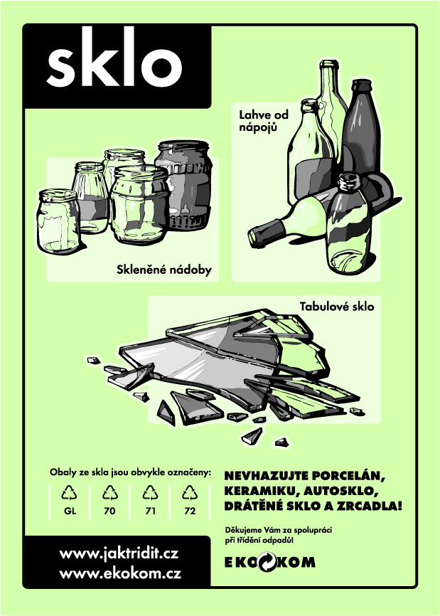 LZE UKLÁDAT: lahve a sklenice z bílého skla a tabulové sklo.