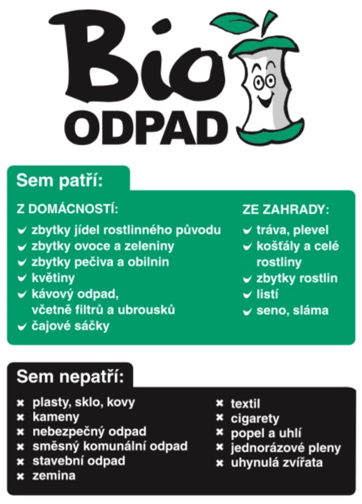 Zpravidla v březnu a dále říjnu/listopadu je možnost odkládat bioodpad do modrého velkoobjemového kontejneru umísťovaného na druhé návsi U Lípy, nebo u víceúčelového hřiště u základní školy. Kontejner je určen na listí, trávu, zbytky rostlin, keře pouze při zkrácení na délku max. 1 m, větve pouze při rozřezání na délku max. 1 m a do průměru 5 cm. Do kontejneru nesmí být vhazovány pařezy a větší kořenové systémy (například od lísky). V případě většího množství větví ze zahrady je možné po dohodě zapůjčit štěpkovač s odborně způsobilou osobou - štěpkujeme na zahradě s účastí žadatele. Při menším množství větví se větve ze zahrady ukládají na dohodnuté místo. Túje a tisy neštěpkujeme. Kontakt: 733 120 090.
